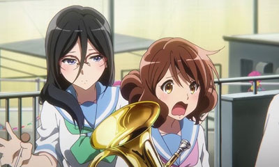 ผลงานแฟรนไชส์ Hibike Euphonium เริ่มต้นจากนิยายชุดของ Ayano Takeda นิยายเล่มแรกตีพิมพ์ในปี 2013 และเป็นฐานให้สร้างอนิเมะทีวีซีรีส์และภาพยนตร์ต่อมา โดยมีการดัดแปลงบทภาพยนตร์จากงานเขียน แกนเรื่องยังคงโฟกัสการเติบโต และมิตรภาพ
